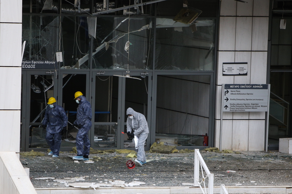 Ο φύλακας του Εφετείου κατέθεσε αργότερα ότι, ενώ βρισκόταν μέσα στο κτήριο, είδε δύο άτομα να ανεβαίνουν τα σκαλιά και να αφήνουν στην είσοδο ένα σακίδιο. Ο αστυνομικός τούς φώναξε, αλλά αυτοί έτρεξαν σε ένα αυτοκίνητο που περίμενε στην οδό Λουκάρεως, τύπου μικρού βαν, όπου τους περίμενε ένας συνεργός τους και με το οποίο διέφυγαν.