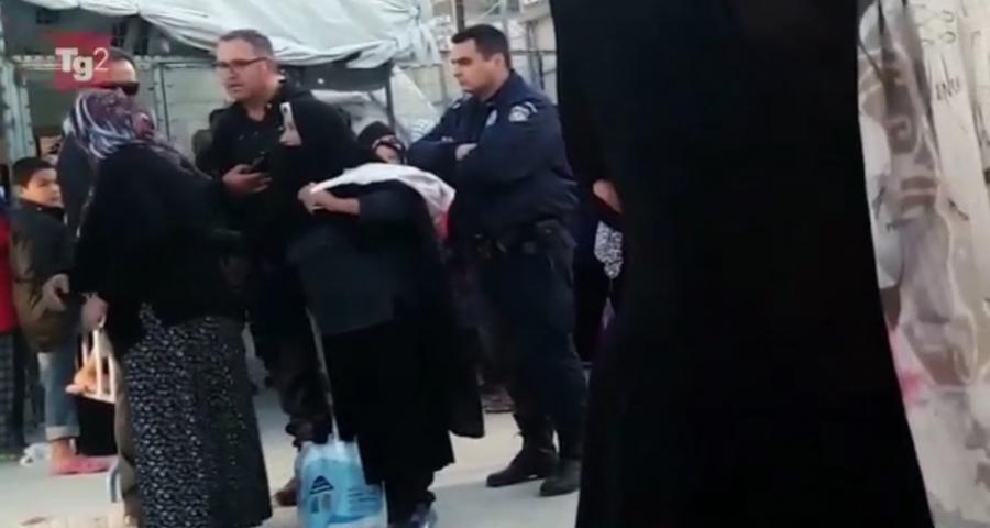 Στο εμφανίζονται αστυνομικοί στη Μόρια να φωνάζουν και να βρίζουν ηλικιωμένη πρόσφυγα στη γραμμή συσσιτίου, ενώ ένας από αυτούς αρπάζει το μπαστούνι της και το πετάει εκτός τηλεοπτικού πλάνου.