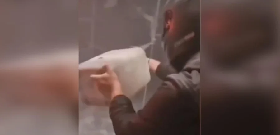 Μάλιστα, σχετικά με το μπιτόνι που απεικονίζεται να κρατά, έφτασε να υποστηρίξει ότι «το μόνο που έβλεπα ήταν νέφος και σκόνη και καπνό από ένα πυρσό, που είχε ανάψει κάποιος από τους επιτιθέμενους. Τότε είδα στο φυλάκιο του σταθμάρχη στην αποβάθρα ότι υπήρχε ένα μπιτόνι γεμάτο με το νερό που αποβάλλονταν από το κλιματιστικό. Το μόνο που σκέφτηκα τότε ήταν να ρίξω αμέσως το νερό μέσα στο βαγόνι προκειμένου να κάτσει το νέφος από τους πυροσβεστήρες, να σβήσει ο καπνός αλλά και να απομακρύνω από εμένα τους επιτιθέμενους βρέχοντας τους».