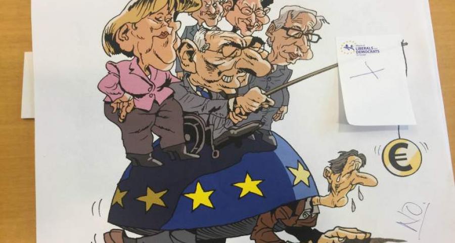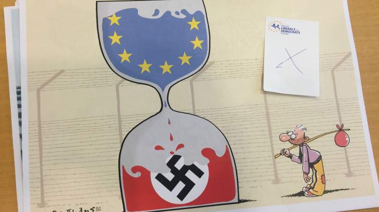 Στις 12/9/2017 ο ευρωβουλευτής Στέλιος Κούλογλου, με έκτακτη συνέντευξη Τύπου που παραχώρησε στο Στρασβούργο, κατήγγειλε «πρωτοφανή απόπειρα λογοκρισίας» σε βάρος έκθεσης γελοιογραφίας που προετοίμαζε με τον συνάδελφό του Patrick Le Hyaric για τα 60 χρόνια της Ευρωπαϊκής Ένωσης.