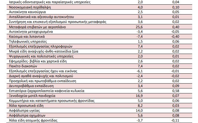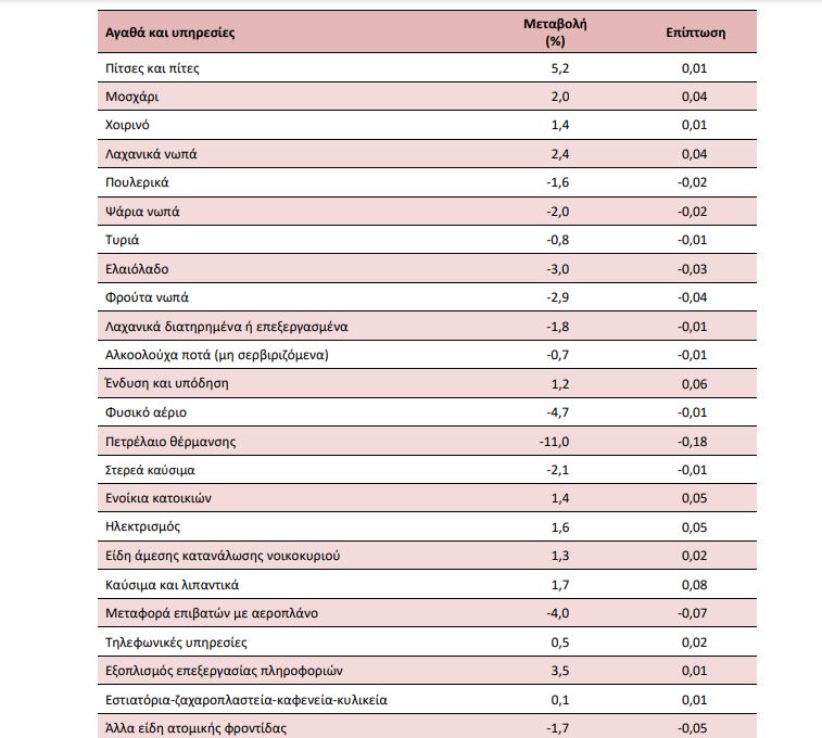 προήλθε κυρίως από τις μεταβολές στις ακόλουθες ομάδες αγαθών και υπηρεσιών: