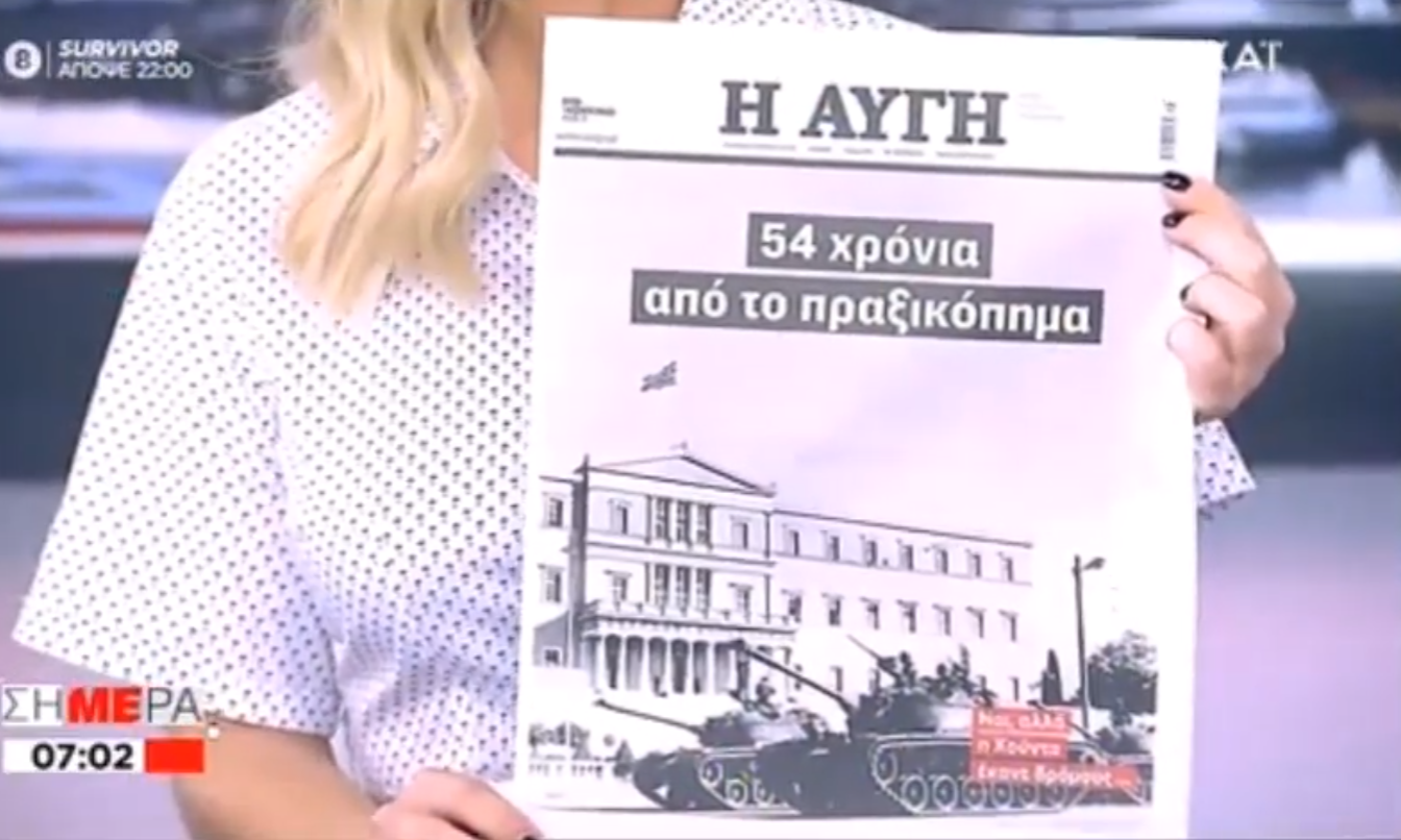 Από την πλευρά του ο Δ. Οικονόμου έφερε στη συζήτηση το σημερινό πρωτοσέλιδο της Αυγής, με τον Πορτοσάλτε να δηλώνει ότι ναι μεν δεν γνωρίζει το πρωτοσέλιδο αλλά στη συνέχεια να ρωτάει «τι έχουν; “Μπήκαν τα τανκς του Μητσοτάκη”;»