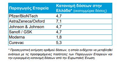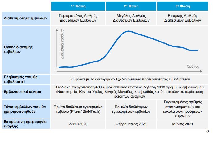 Όσον αφορά το σχέδιο εμβολιασμού, η έκθεση γράφει: «Κατά τις πρώτες παραλαβές σκευασμάτων από τις Παραγωγούς Εταιρείες, οι διαθέσιμες δόσεις θα είναι περιορισμένες σε αριθμό, σύμφωνα με την κατανομή μεταξύ των Κρατών-Μελών της Ευρωπαϊκής Ένωσης που έχει προδιαγραφεί από αυτή βάσει πληθυσμιακών κριτηρίων».