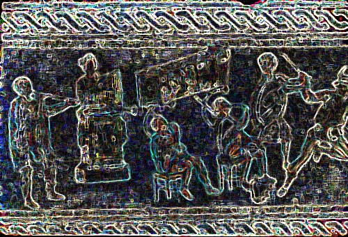Ζήτησαν από τους μουσικούς να παίξουν για την πόλη τους. Κάτι που οι καλλιτέχνες δέχτηκαν με χαρά. Η μουσική αντηχούσε, το κρασί έρεε, οι μουσικοί μέθυσαν – κάτι που επεδίωξαν οι ντόπιοι- και έπεσαν σε βαρύ ύπνο. Έτσι τους κουβάλησαν σε κάρα και τους μετέφεραν, μεθυσμένους και βαριά κοιμώμενους, μέσα στο Φόρουμ της Ρώμης. Εκεί που όλα ήταν έτοιμα για τη μεγάλη γιορτή και εκεί που ήδη, από την ώρα που διαδόθηκε το νέο της έλευσης, είχε κατέβει ο λαός της Ρώμης για να υποδεχθεί με ενθουσιασμό τους πρωτεργάτες των καλών οιωνών.