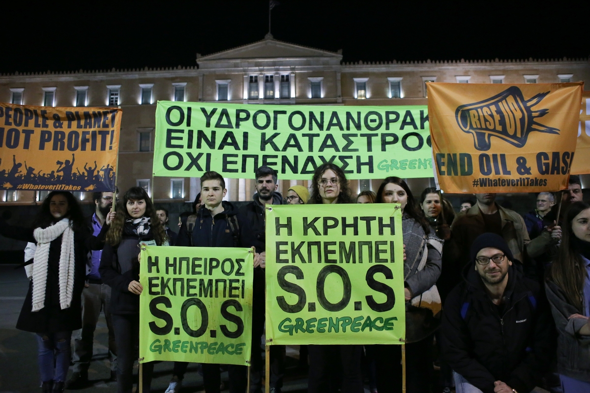 «Κυβέρνηση και μεγάλοι ενεργειακοί όμιλοι, έχουν συμφωνήσει στην υλοποίηση ενός φαραωνικού σχεδίου εξόρυξης υδρογονανθράκων (πετρελαίου και φυσικού αερίου). Για το σκοπό αυτό, το 1/3 περίπου της ηπειρωτικής και θαλάσσιας επικράτειας της χώρας έχει εκχωρηθεί με μακροχρόνιες συμβάσεις. Οι πρώτες ερευνητικές γεωτρήσεις στην Ήπειρο είναι ο προάγγελος των όσων θα ακολουθήσουν. Tο 2019 προβλέπεται να είναι καθοριστικό για την ολοκλήρωση των διαδικασιών, ώστε να ξεκινήσουν εργασίες και στην Αιτωλοακαρνανία, στη ΒΔ Πελοπόννησο, στο Κατάκολο, στον Πατραϊκό, σε όλο το Ιόνιο και στις θαλάσσιες περιοχές νότια και νοτιοδυτικά της Κρήτης. Πρόκειται για σχέδιο, που βρίσκεται σε πλήρη αντίθεση με την υποκριτική ρητορική για την προστασία του κλίματος και για τη διασφάλιση των ενεργειακών αναγκών της χώρας.