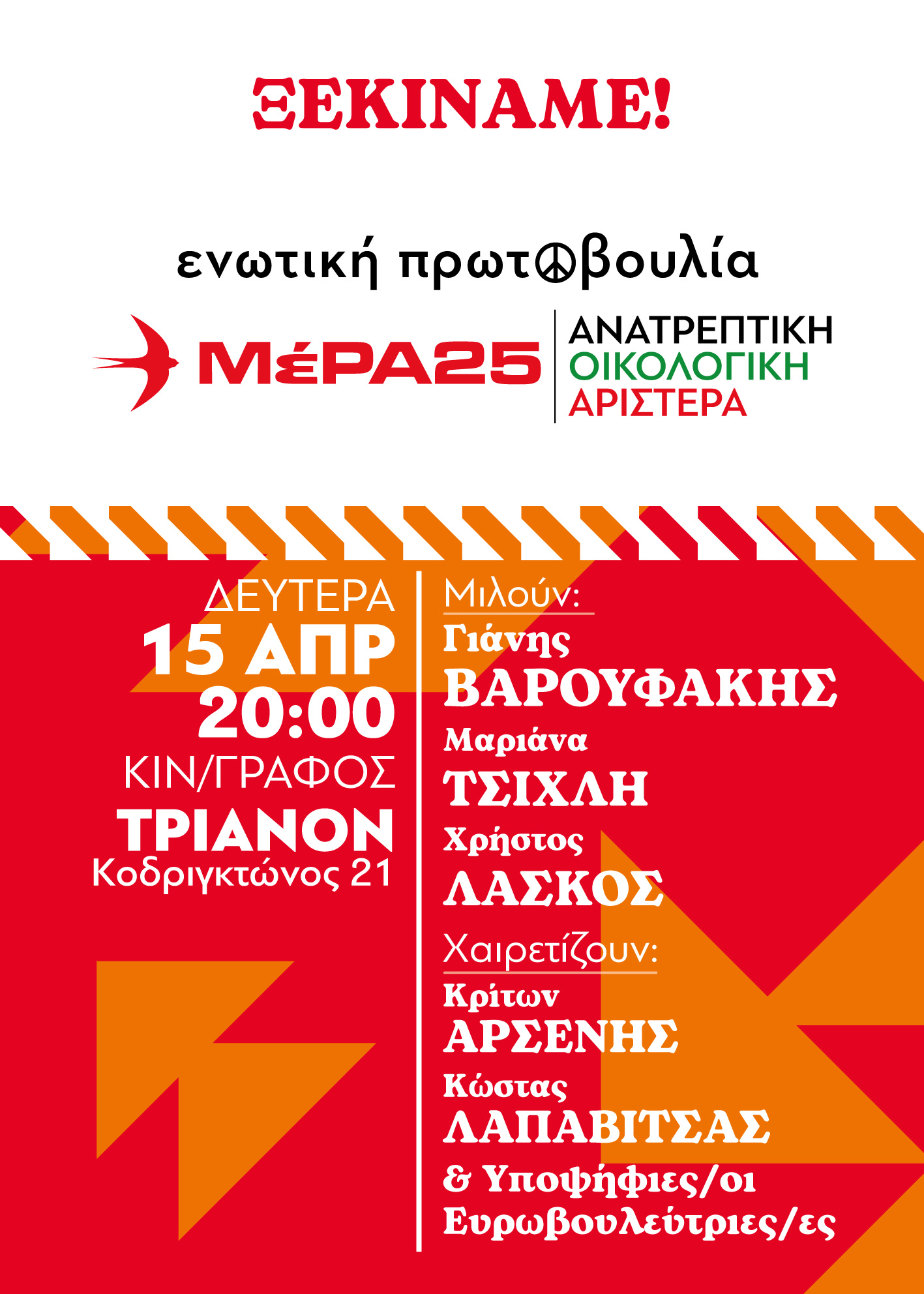 Χαιρετίζουν: Κρίτων Αρσένης, Κώστας Λαπαβίτσας και υποψήφιες/οι ευρωβουλευτές.