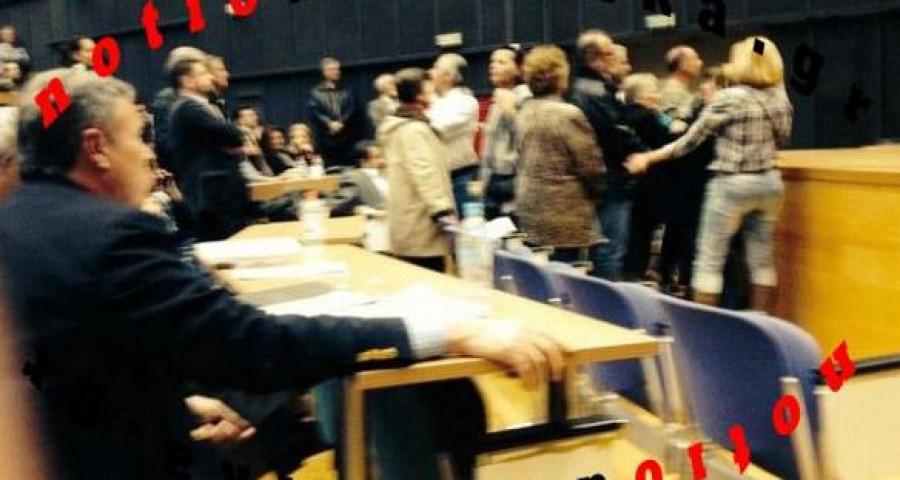 Η συνεδρίαση διακόπηκε για αρκετή ώρα και στη συνέχεια αποχώρησε η παράταξη της «Λαϊκής Συσπείρωσης».