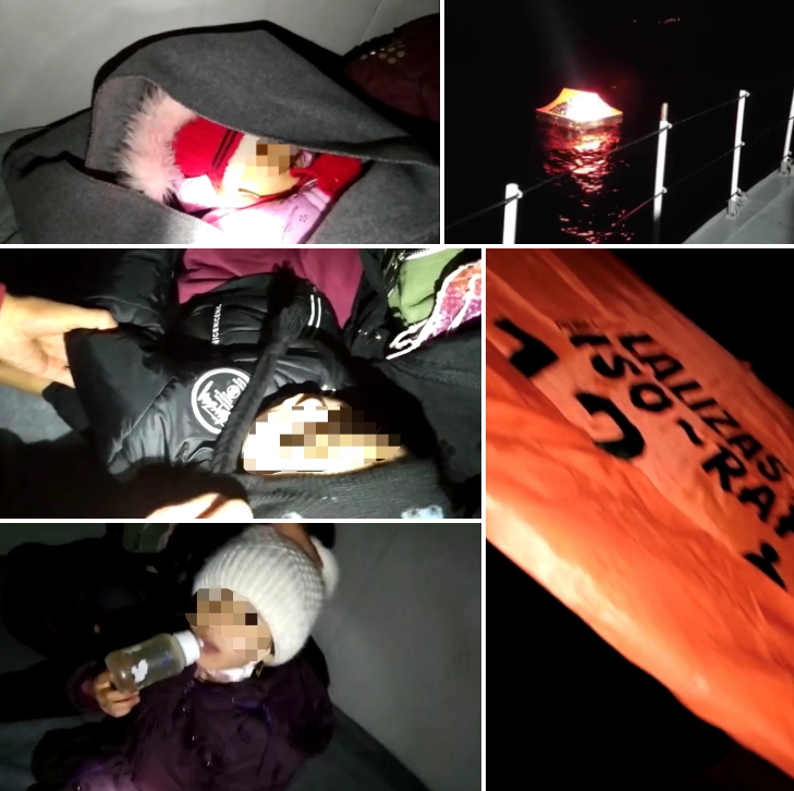 Ακολούθησε βίντεο που τους απεικονίζει στριμογμένους, ενώ το επόμενο ηχητικό μήνυμα καταγράφεται στη 1.27 μετά τα μεσάνυχτα της Τετάρτης, 17 Φεβρουαρίου, προς Πέμπτη, 18 Φεβρουαρίου: «Ναι, κύριε, Μας είπαν “θα πάτε πίσω στην Τουρκία”. Και παίρνουν πολλά κινητά, τις τσάντες, όλα, πολλά κινητά και τσάντες, όλα». Δυο λεπτά μετά, οι πρόσφυγες στέλνουν βίντεο με τους ίδιους στριμωγμένους μέσα σε φουσκωτή σχεδία τύπου liferaft, με τα παιδιά στην αγκαλιά τυλιγμένα σε μπουφάν.