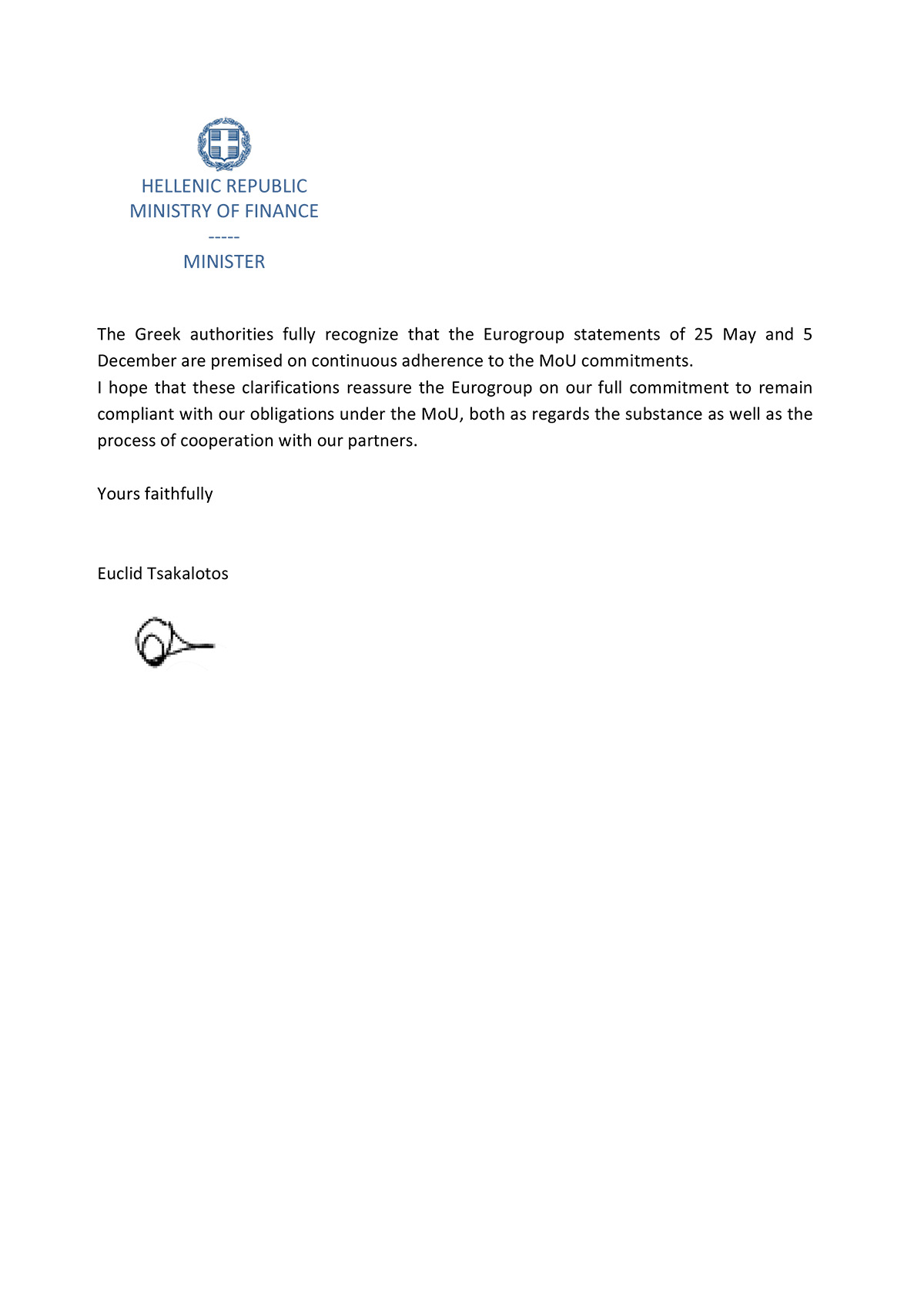 Η επιστολή ζητήθηκε από την κυβέρνηση ως απόδειξη υποτέλειας και αποτελεί σαφή ένδειξη ότι ο Τσίπρας -παρά τις προσπάθειες- δεν έχει καταφέρει να κερδίσει την «εύνοια» του Σόιμπλε, όπως δεν την είχε κερδίσει επίσης ο Παπανδρέου, ο Σαμαράς και δεν θα την κερδίσει ούτε ο Μητσοτάκης. Ο Σόιμπλε θέλει να γίνεται η δουλειά, όχι να χαρίζεται στον ένα και στον άλλο. Ο Τσίπρας έπραξε πίσω από την πλάτη του και αυτό είχε ως αποτέλεσμα να του ζητηθεί να εξευτελιστεί ο Τσακαλώτος με μια επιστολή που γράφει ότι πλέον «παραδέχεται ότι τα μέτρα που έχουν δημοσιονομικό αντίκτυπο θα πρέπει να συζητιούνται και να συμφωνούνται με τους Θεσμούς».