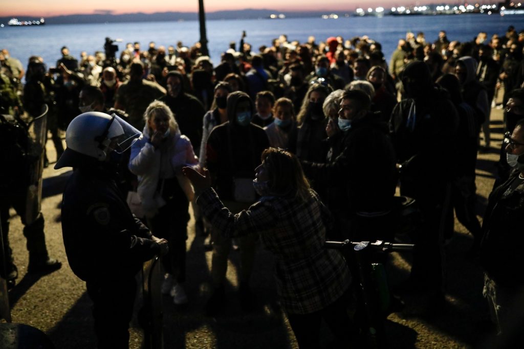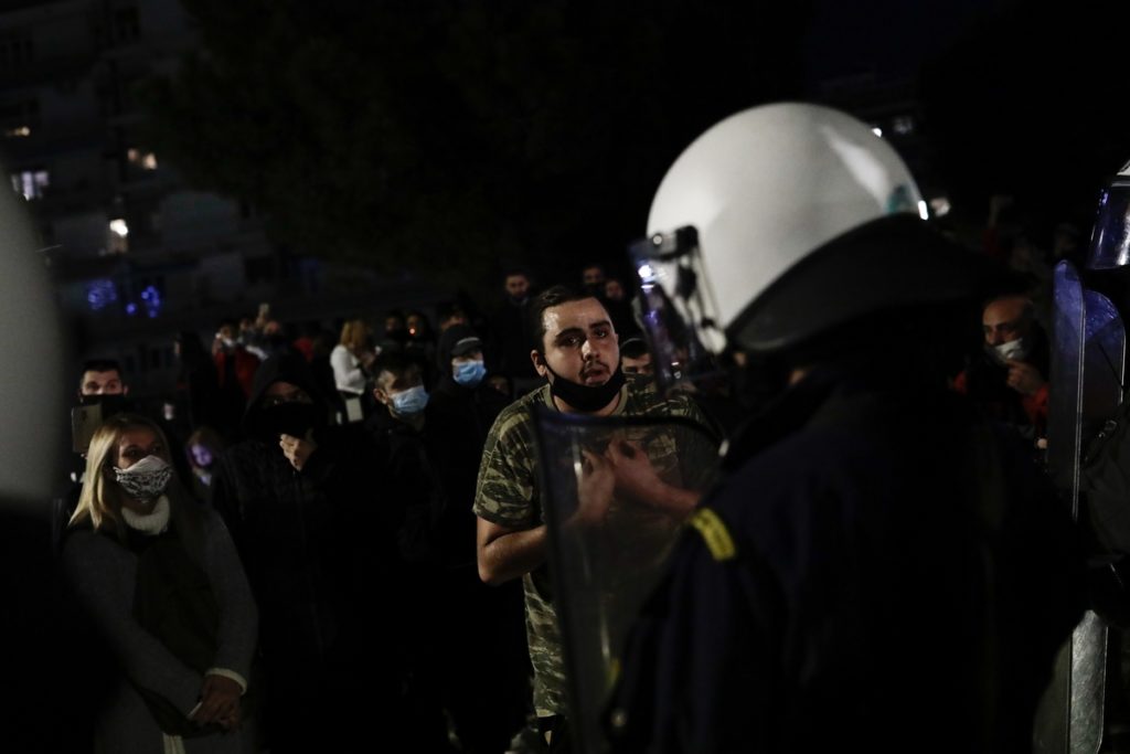 Ένταση προκλήθηκε, σύμφωνα με το Voria.gr, όταν οι αστυνομικές δυνάμεις περικύκλωσαν τους συγκεντρωμένους, προκειμένου να διαλυθεί η συγκέντρωση και να επιβληθούν πρόστιμα για τις παραβάσεις. Κάποιοι από τους συγκεντρωμένους, την ώρα που άρχισαν να απομακρύνονται, πέταξαν πέτρες, μπουκάλια και άλλα αντικείμενα σε αστυνομικούς και δημοσιογράφους που κάλυπταν τη διαμαρτυρία. Άλλοι από τους συγκεντρωμένους τους ζητούσαν να σταματήσουν. Οι αστυνομικοί «απάντησαν» με χρήση χημικών και ακολούθησε κυνηγητό στους δρόμους, ενώ προκλήθηκαν και ζημιές από τους συγκεντρωμένους, σύμφωνα με τις ίδιες πληροφορίες.