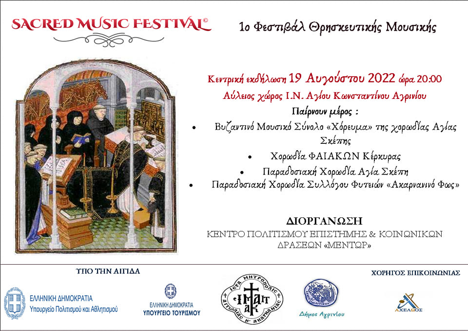 - ΚΕΝΤΡΟ ΠΟΛΙΤΙΣΜΟΥ ΕΠΙΣΤΗΜΗΣ ΚΑΙ ΚΟΙΝΩΝΙΚΩΝ ΔΡΑΣΕΩΝ ΜΕΝΤΩΡ – 1o ΦΕΣΤΙΒΑΛ ΘΡΗΣΚΕΥΤΙΚΗΣ ΜΟΥΣΙΚΗΣ ΘΕΡΜΟΥ – 1st Sacred Music Festival – € 3.000
