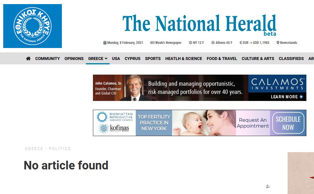 Έπειτα από τις προηγούμενες παρεμβάσεις σε ελληνικά μέσα ενημέρωσης τα οποία φιλοξένησαν κείμενα επικριτικά προς την κυβέρνηση, όπως το παράδειγμα στο «Βήμα» και τα «Νέα», ένα ακόμα περίεργο γεγονός έρχεται στο φως της δημοσιότητας, καθώς αίσθηση προκαλεί η «εξαφάνιση» επικριτικού κειμένου κατά του πρωθυπουργού από την αγγλική έκδοση του «Εθνικού Κήρυκα».
