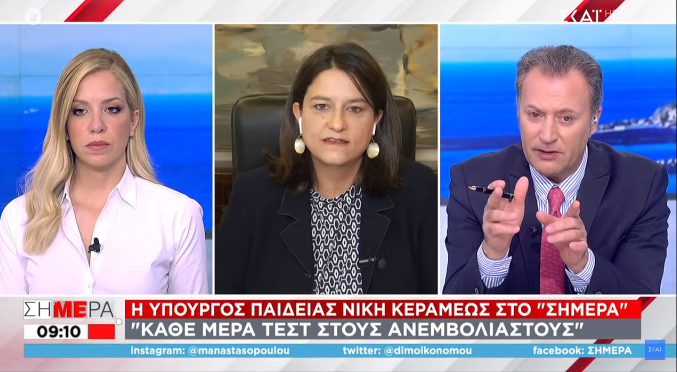 Η Νίκη Κεραμέως, μιλώντας στον Σκάι, επικαλέστηκε ως επιχείρημα για την απόφαση να μην αλλάξει το πρωτόκολλο 50%+1 για να κλείνει μια σχολική τάξη , ότι «το ζητούμενο είναι η επιδημιολογική επιτήρηση και αυτή επιτάθηκε με δύο μέτρα, να γίνονται τεστ και σε εμβολιασμένους και σε περίπτωση κρούσματος να κάνουν επί ένα 5νθήμερο τεστ τα παιδιά».