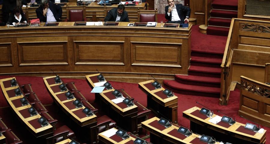 Τα κόμματα της συγκυβέρνησης βρέθηκε μόνη της στην αίθουσα με τη Χρυσή Αυγή καθώς τα υπόλοιπα κόμματα αποχώρησαν.