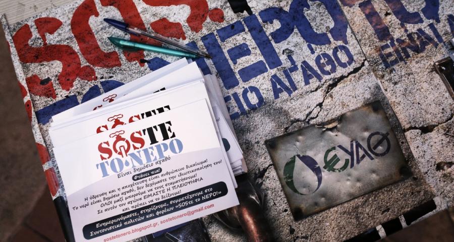 Η Ελλάδα θα αναγκαστεί να ιδιωτικοποιήσει τις μεγαλύτερες εταιρείες ύδρευσης, σε Θεσσαλονίκη και Αθήνα. Η οργή είναι μεγάλη και η αντίσταση αυξάνεται. «Η παροχή του νερού είναι ένα ανθρώπινο δικαίωμα. Το νερό είναι δημόσιο αγαθό και όχι εμπόρευμα»