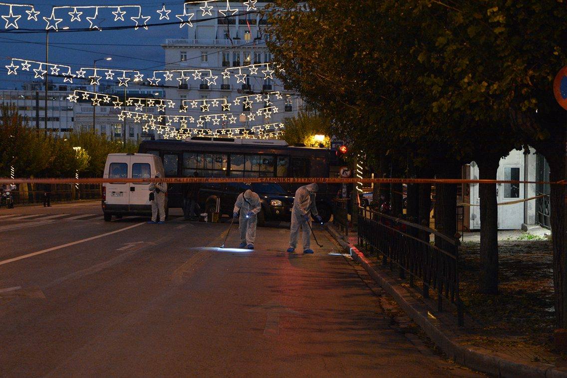 Από τα θραύσματα που περισυνελέγησαν διαπιστώθηκε ότι η χειροβομβίδα είναι αμυντικού τύπου και εξερράγη σε απόσταση περίπου 3 μέτρων από την αλεξίσφαιρη σκοπιά, όπου βρισκόταν ο 33χρονος ειδικός φρουρός, ο οποίος τραυματίστηκε ελαφρά στον μηρό, καθώς βγήκε για να δει τι συμβαίνει.
