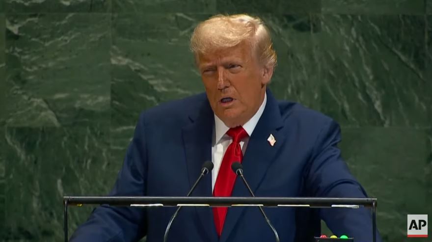 Ο πρόεδρος των ΗΠΑ Ντόναλντ Τραμπ μίλησε από το βήμα του ΟΗΕ μετά την επίσημη αναγνώριση του παλαιστινιακού κράτους από αρκετές χώρες. Λειτουργώντας ως υπερασπιστής της γενοκτονίας, αναπαράγοντας τη γραμμή του κράτους – δολοφόνου Ισραήλ, είπε ότι «πολλά κράτη βιάστηκαν να αναγνωρίσουν το παλαιστινιακό κράτος και ότι αυτό αποτελεί ανταμοιβή για τις θηριωδίες της Χαμάς την 7η Οκτωβρίου» και προέτρεψε για άμεση απελευθέρωση όλων των ομήρων, λέγοντας ότι οι ειρηνευτικές προσπάθειες πρέπει να οδηγήσουν σε αποτέλεσμα. Η δήλωσή του αυτή προκάλεσε χειροκροτήματα στην αίθουσα.