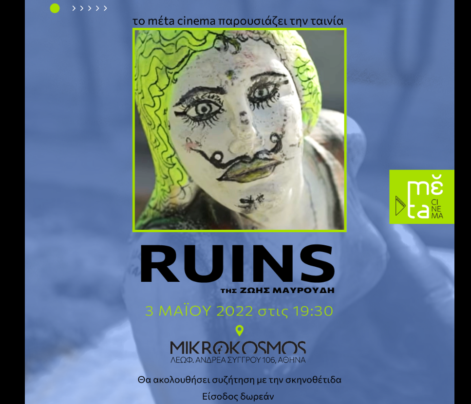 Ζητούμε συγγνώμη από το κοινό και τους ομιλητές για την επιβεβλημένη ακύρωση και δεσμευόμαστε να επαναπρογραμματίσουμε άμεσα την προβολή της ταινίας Ruins και την (τόσο απαραίτητη, όπως αποδεικνύεται διαρκώς) συζήτηση που θα την συνοδεύει.