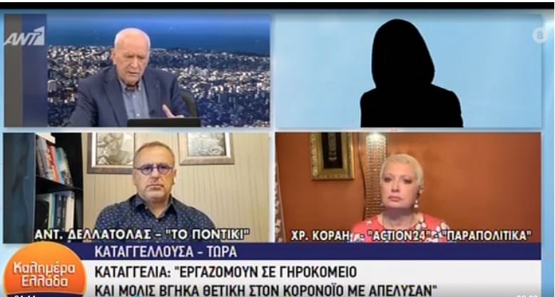Μιλώντας στον ΑΝΤ1 ανώνυμα η εργαζόμενη ανέφερε ότι από το γηροκομείο που εργαζόταν υποχρεώθηκε σε οικειοθελή αποχώρηση επειδή διαγνώστηκε θετική στον κορονοϊό.