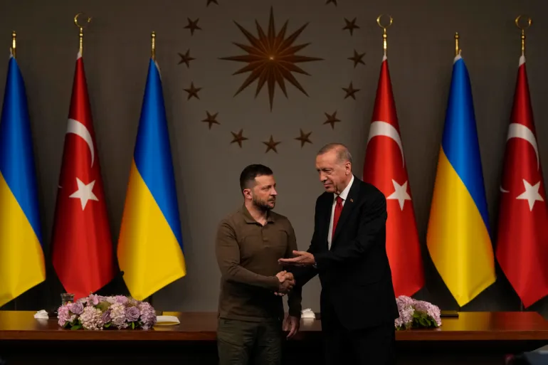 Ο Ζελένσκι ευχαρίστησε τον Ερντογάν για την υποστήριξή του, η οποία έρχεται ενόψει της βασικής συνόδου κορυφής του ΝΑΤΟ που πρόκειται να ξεκινήσει την Τρίτη στο Βίλνιους της Λιθουανίας.