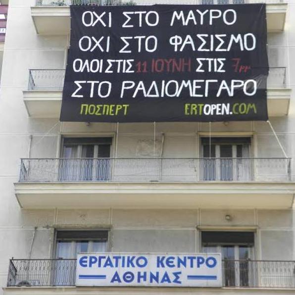 Είναι το πανό των αγωνιστών της Ελεύθερης ΕΡΤ, των αγωνιζόμενων συναδέλφων της ΠΟΣΠΕΡΤ – της ERTOPEN.COM, και των αλληλέγγυων, που καλεί τους πολίτες της Αθήνας στη μεγάλη συγκέντρωση της Τετάρτης 11 Ιούνη.