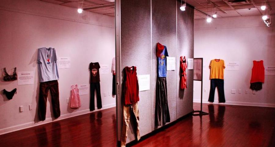 Η έκθεση με τίτλο «Τι φορούσατε;» περιλαμβάνει 18 ιστορίες σεξουαλικής κακοποίησης και αναπαραστάσεις για το τι φορούσε κάθε θύμα τη στιγμή της επίθεσης. Τα ρούχα της έκθεσης περιλαμβάνουν ένα μπικίνι, ένα κίτρινο παιδικό πουκάμισο, ένα στενό κόκκινο φόρεμα, ένα απλό μπλουζάκι, ένα τζιν και πολλά άλλα ρούχα. Δεν πρόκειται βέβαια για τα πραγματικά ρούχα των θυμάτων, αλλά για ρούχα που προέρχονται από δωρεές φοιτητών και καθηγητών του πανεπιστημίου και ταιριάζουν στις περιγραφές τω θυμάτων.