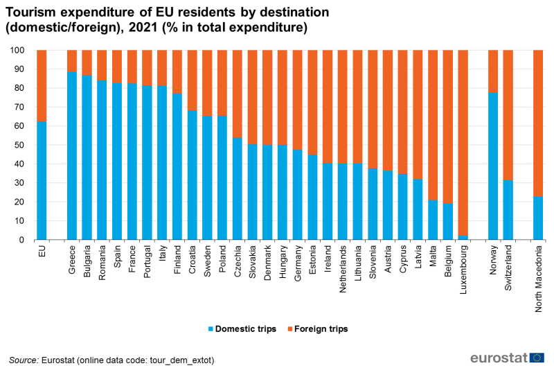 Οι Έλληνες, σύμφωνα με τη Eurostat, δαπανούν για τις διακοπές τους ποσό που δεν αγγίζει καν τα 40 ευρώ ανά ημέρα. Την ίδια στιγμή ο μέσος όρος στην ΕΕ φτάνει τα 70 ευρώ. Από ολόκληρη την Ευρωπαϊκή Ένωση, μόνο οι πολίτες της Τσεχίας δαπανούν λιγότερα για τις διακοπές τους από ότι οι Έλληνες, με βάση τα στοιχεία του 2021.