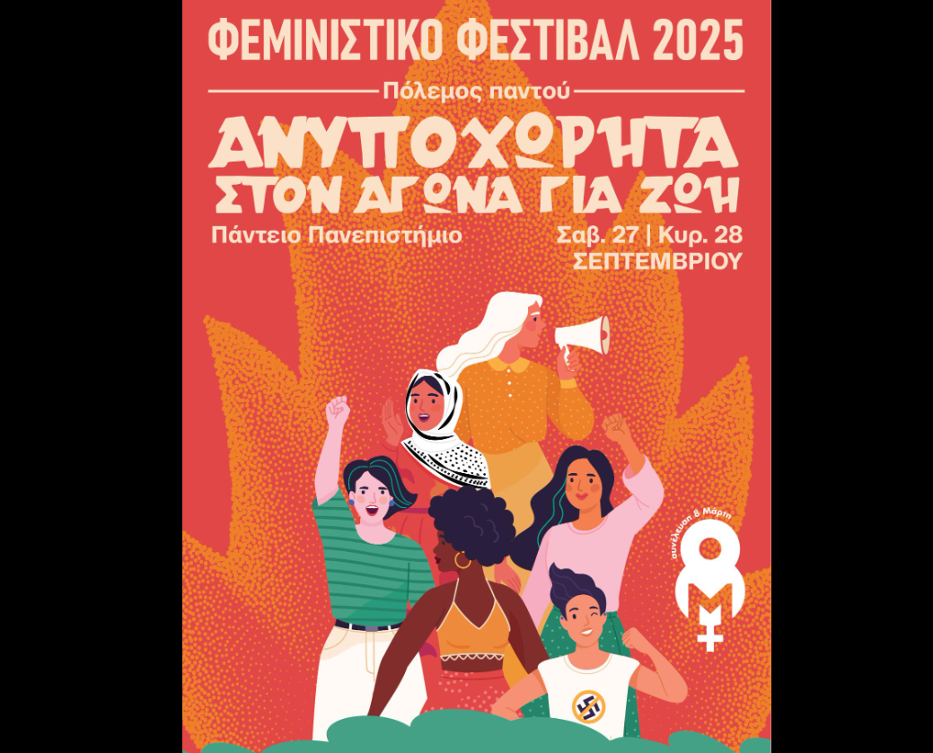 «Το Φεμινιστικό Φεστιβάλ, για 4η συνεχή χρονιά, επιστρέφει στις 27 και 28 Σεπτεμβρίου για να μεταμορφώσει το Πάντειο Πανεπιστήμιο σε χώρο φεμινιστικής στΟργής και ριζοσπαστικής αντίστασης. Με κεντρικό σύνθημα “Πόλεμος παντού – Ανυποχώρητα στον αγώνα για ζωή”, εκφράζουμε την ανυποχώρητη δέσμευσή μας στις πολιτικές που υπερασπίζονται τις ζωές μας, τις τιμούν και τις γιορτάζουν. Σε μια εποχή πολεμικών επιχειρήσεων σε εδάφη, δικαιώματα, σύνορα και φύλα στο φετινό φεστιβάλ δηλώνουμε ότι τα σώματά μας δεν είναι μόνο πεδία μάχης. Είναι τόποι μνήμης, διεκδίκησης, φροντίδας και ελευθερίας.