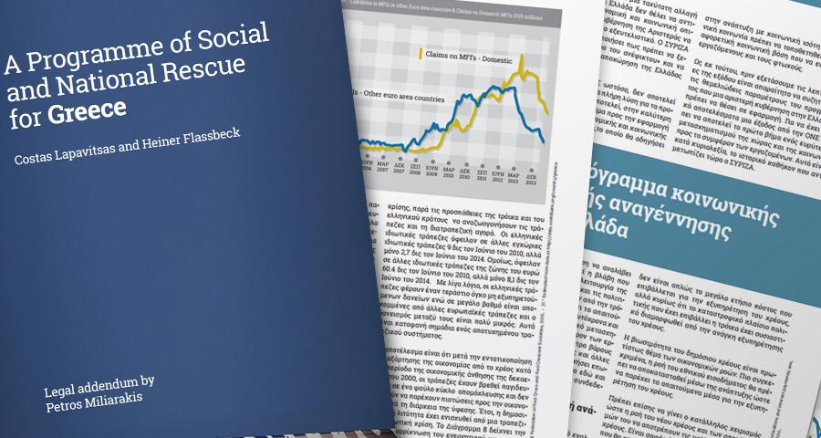 “Programme of Social and National Rescue for Greece” by K.Lapavitsas and H.Flassbeck had already been completed since May, long before the capital controls were imposed in Greece. The two writers had already published their book “Against the Troika”-a preform of the Plan- by January 2015.