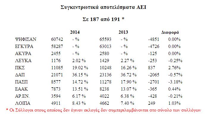 Σύμφωνα με τον ιστότοπο της Πανσπουδαστικής, αργά την Τετάρτη, τα αποτελέσματα έχουν ως εξής: