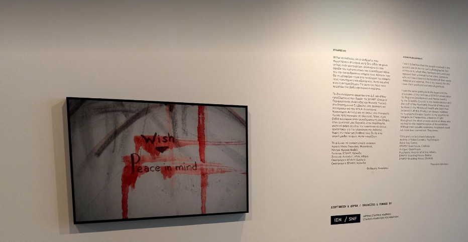 «Επί νοός ειρήνη / Wish Peace in Mind» τιτλοφορείται το έργο του Θοδωρή Νικολάου -φωτογράφου, δημοσιογράφου-, που αποτελεί μια πολυπρισματική θέαση του κόσμου της ψυχικής υγείας. Μέσα από εννιά ενότητες – αναπαραστάσεις, μέρος των οποίων είναι και το προσωπικό βίωμα του φωτογράφου, ο δημιουργός μας συστήνει και μας εξοικειώνει με τον «άλλον», ο οποίος με την αντιστροφή του φωτογραφικού ειδώλου, ίσως εν τέλει να είναι ο καθένας από εμάς. Ο Θοδωρής Νικολάου τα τελευταία πέντε χρόνια επισκέπτεται συστηματικά ψυχιατρικά νοσοκομεία και τμήματα ανά την Ελλάδα, και ερευνά ένα κατακερματισμένο ψυχιατρικό σύστημα δημόσιας υγείας, καταγράφοντας τις αντιφάσεις, τα προσωπικά αδιέξοδα, τον στιγματισμό και τον κοινωνικό αποκλεισμό που αυτό γεννά. Δεν μένει όμως εκεί. Δεν τον ενδιαφέρει μονάχα το σκοτάδι. Το έργο του αποτελείται από πρόσωπα, αντικείμενα, ζωγραφισμένους τοίχους. Δεν είναι μονάχα φωτογραφίες. Είναι εμπειρία σ’ έναν κόσμο με όμορφα πλάσματα και ξεχωριστές ψυχές.