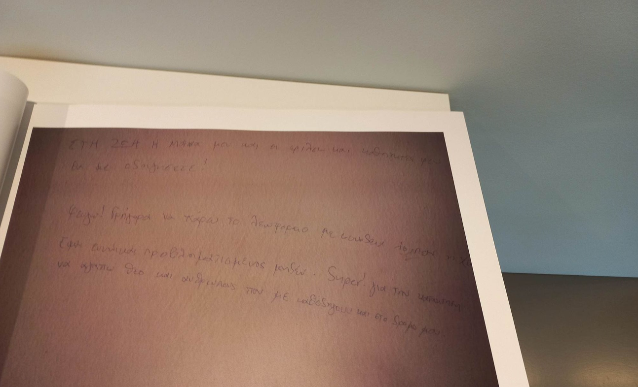 Βρέθηκα εκεί, λίγες ώρες αφότου είχαν ανοίξει οι πόρτες για το κοινό, ανάμεσα σε κορίτσια με μακριά λουλουδάτα φορέματα και πολύχρωμα κοκαλάκια στα μαλλιά, να κλαίμε μαζί και να πλησιάζουμε το πρόσωπό μας στα πρόσωπα των φωτογραφιών. Να σπάμε σε κομμάτια. Στην έκθεση βρίσκεις ένα κομμάτι σου, πολύ ή λίγο δικό σου ή αγαπημένων σου. Κι είναι και η αυτοαναφορική ταμπέλα του Θοδωρή ανάμεσα στις φωτογραφίες που σε κάνει να νιώθεις πως δεν είσαι μόνος. «Πρώτη φορά διαγνώστηκα με κατάθλιψη το 2008. Για χρόνια έχω υπάρξει ανήμπορος να εκτελέσω οποιαδήποτε εργασία ή κοινωνική πράξη. Τα καταθλιπτικά επεισόδια συνοδεύονται πάντοτε από αποπροσωποποίηση… Είναι σα να μην έχω παρελθόν, παρόν και μέλλον. Αντιλαμβάνομαι τον εαυτό μου ως έναν άλλο στον κόσμο, κάποιες φορές σαν να μην υπάρχει κι άλλες σα να μην υπάρχω εγώ σε αυτόν… Μαζί με ό,τι υπάρχει σε αυτή την αίθουσα είναι η ζωή μου, η μήτρα που γέννησε την λίγων μηνών κόρη μου, η σύντροφός μου, η μητέρα και ο πατέρας μου…».