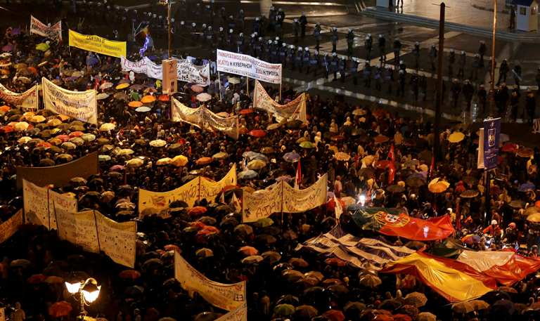 Φωτορεπορτάζ: Η συγκέντρωση των διαδηλωτών στο Σύνταγμα