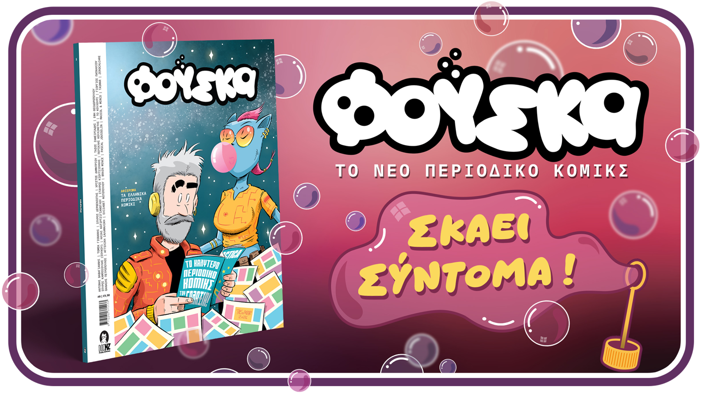 Έτσι το έφεραν η μοίρα και τα χρόνια, και τώρα μιλάμε για τη «Φούσκα» τους, ένα έντυπο project που ίσως να φαντάζει σαν «χάρτινος πύργος» έτοιμος να καταρρεύσει στις «9 παρά πέντε» αλλά ίσως και να διανύσει τη δική του τροχιά, όχι σαν κομήτης, αλλά σαν ένα ιστορικό περιοδικό μιας νέας γενιάς που οραματίστηκε να αλλάξει έστω και λίγο τον κόσμο από το εφηβικό της δωμάτιο και είναι αποφασισμένη να τα καταφέρει. Συναντηθήκαμε, λοιπόν, που αλλού; Στο φεστιβάλ κόμικς «Comic ‘n’ Play» στη Θεσσαλονίκη στα μέσα του Φεβρουάριου και μιλήσαμε για τη «Φούσκα», για τα κόμικς, για την κοινότητα και για όλα όσα αποτελούν την ουσία ενός εντύπου για κόμικς -και όχι μόνο, όπως λέγαμε παλιά.