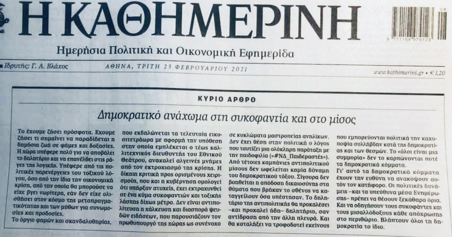 Διαβάστε αναλυτικά το κύριο άρθρο της Καθημερινής: