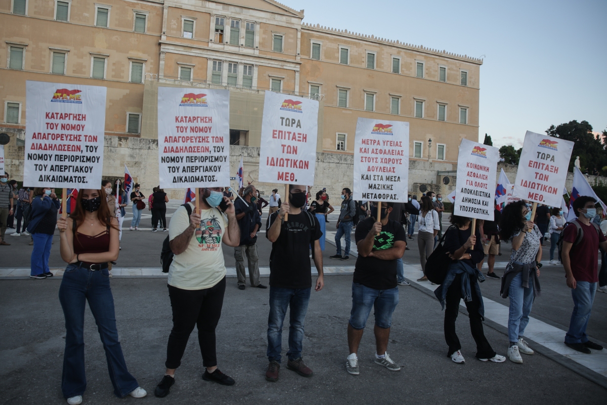 Με τα μουσικά τους όργανα να δίνουν τόνο και ρυθμό στην απαίτηση μέτρων για την επιβίωση των εργαζομένων στον Πολιτισμό έφτασαν στο Σύνταγμα ο Πανελλήνιος Μουσικός Σύλλογος και καλλιτεχνικά σωματεία.