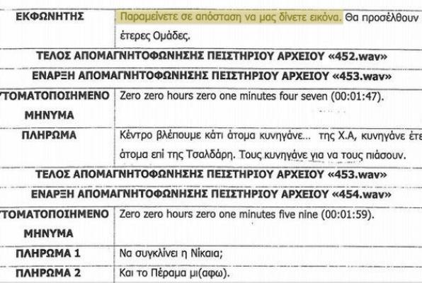 It is evident from the dialog that police HQ was briefed that the Golden Dawn gang was targeting an anti-establishment group, however the officers on the scene were ordered not to intervene.
