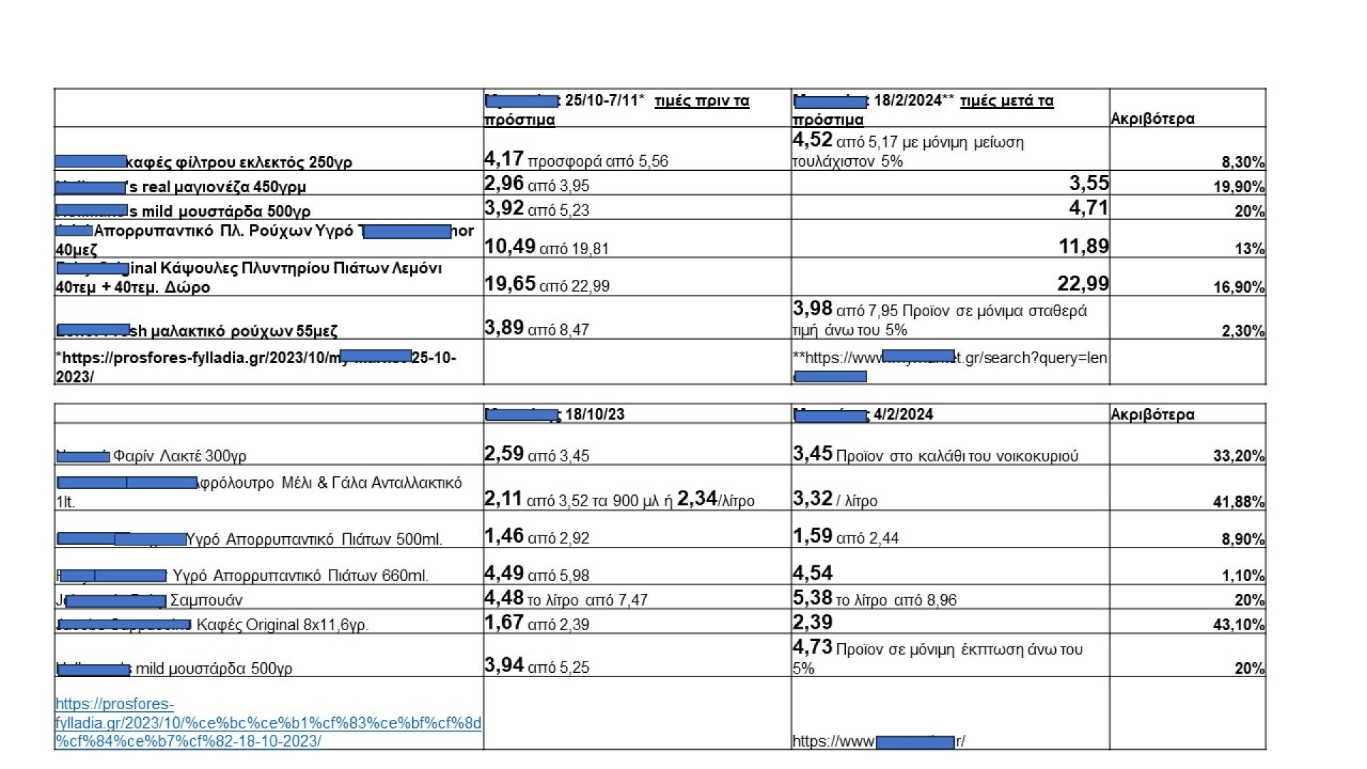 «Μέσα από τα στοιχεία ιστοσελίδων μεγάλων σούπερ μάρκετ και στα αντίστοιχα φυλλάδια προσφορών και εκπτώσεων τους, προκύπτει ότι όχι μόνο οι τιμές μετά τα πρόστιμα στις πολυεθνικές εταιρίες δεν έπεσαν αλλά αντιθέτως αυξήθηκαν ως και 43%. Η ακρίβεια συνεχίζει να μαστίζει τα ελληνικά νοικοκυριά και η κυβέρνηση παραμένει ανίκανη να την αντιμετωπίσει.