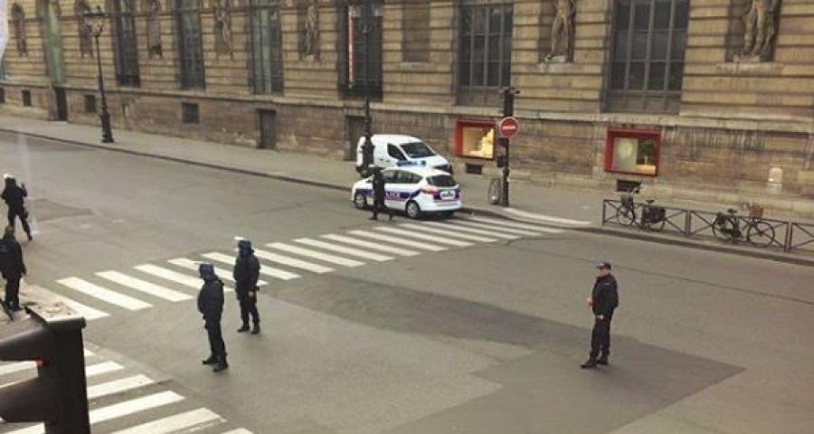Πληροφορίες πως η αστυνομία έχει προχωράει σε εκκένωση της περιοχής, καθώς και για το προσωρινό κλείσιμο του κοντινού σταθμού του μετρό, Palais Royal Musee du Louvre