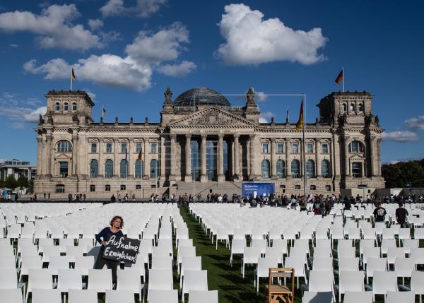 Τη Δευτέρα ομάδες ακτιβιστών που πραγματοποιούν διασώσεις προσφύγων και μεταναστών στο Αιγαίο, τοποθέτησαν συμβολικά έξω από τη γερμανική Βουλή 13.000 καρέκλες, θέλοντας να εκφράσουν την αντίθεση τους για τους 13.000 ανθρώπους που βρίσκονται εγκλωβισμένοι στο κέντρο της Μόριας στη Λέσβο.