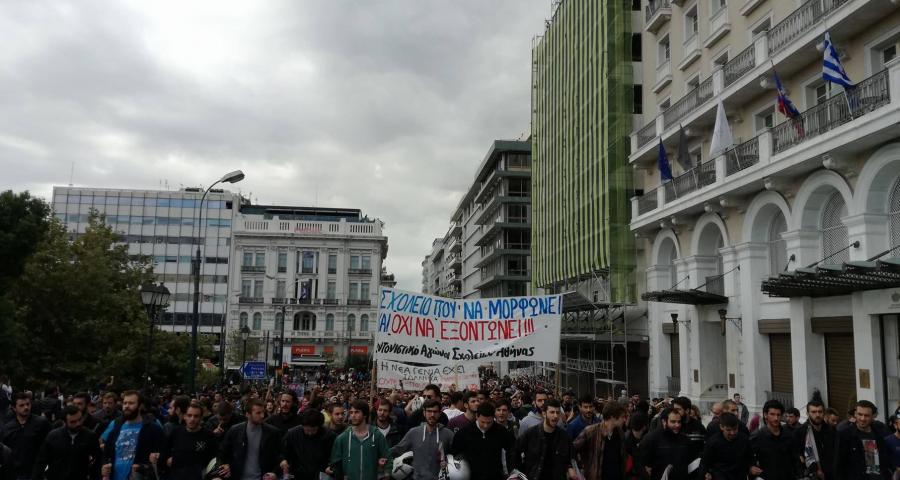 Η πορεία συνεχίστηκε μέχρι το Σύνταγμα με τους μαθητές να φωνάζουν συνθήματα όπως «η νέα γενιά έχει ιδανικά ούτε ξεπουλιέται ούτε ξεπουλά» και «στους δρόμους είναι οι μαθητές, έξω από τα σχολειά μας οι πολυεθνικές».
