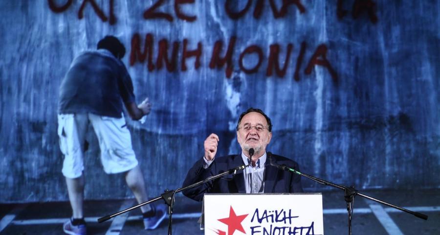 Καταλήγοντας στις δηλώσεις του ο κ. Λαφαζάνης είπε «δεν πρέπει να έχει κανένας καμία αυταπάτη: Aν στις επερχόμενες εκλογές δεν υπάρξει μια μεγάλη προοδευτική ανατροπή στη χώρα με ισχυρή τη Λαϊκή Ενότητα και ένα μεγάλο προοδευτικό και πατριωτικό αντιμνημονιακό μέτωπο, τότε η Ελλάδα είτε με ΣΥΡΙΖΑ, είτε με Ν.Δ., είτε και με τους δύο μαζί σε συγκυβέρνηση, οδηγείται σε νέο, ακόμα σκληρότερο οικονομικό και γεωπολιτικό μνημόνιο, με άμεσο κίνδυνο τη διχοτόμηση του Αιγαίου και των δικαιωμάτων της Κύπρου στην Ανατ. Μεσόγειο αλλά ακόμη και τον εθνικό ακρωτηριασμό».