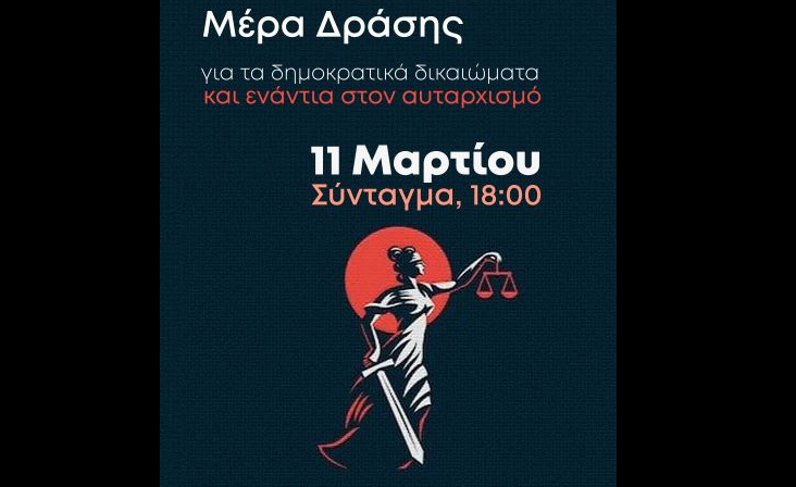 Την Πέμπτη 11/3, στις 6μμ στο Σύνταγμα, καλούμε σε Μέρα Δράσης για τα Δημοκρατικά Δικαιώματα και ενάντια στον αυταρχισμό.