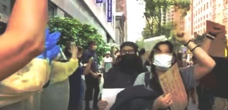 Ένα ιδιαίτερο στιγμιότυπο που έλαβε χώρα σε μία από τις μαζικότερες διαδηλώσεις που έγιναν στη Νέα Υόρκη μετά τη δολοφονία του Τζορτζ Φλόιντ από αστυνομικούς ανέδειξε η συλλογικότητα «Κανένας Μόνος / Καμία Μόνη».