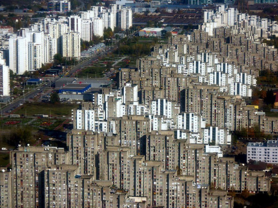 Λίγο όλα αυτά, λίγο οι πρόμο φωτογραφίες της πόλης στο Ίντερνετ, φτάνοντας στο Βελιγράδι περίμενα να αισθανθώ πως βρίσκομαι σε μια Θεσσαλονίκη λίγο πιο φτωχή, λίγο πιο αυστρο-ουγγρική και κάπως λιγότερο οθωμανική. Το οποίο, κακώς. Η επανειλημμένα εξωτικοποιημένη, και εσχάτως ακόμα περισσότερο λόγω των χίπστερ ρευμάτων, «τσιμεντένια ουτοπία» της Γιουγκοσλαβίας είναι αυτό που δεσπόζει, αναμενόμενα και εμφατικά, στο Βελιγράδι. Και η πάσα αλήθεια είναι ότι, πέρα από το προσεκτικό και κατά μόνας στυλιζάρισμα των δυτικών εντύπων αισθητικής σοσιαλιστικού ρομαντισμού, στην καθημερινή απεραντοσύνη της, στην ελλιπή συντήρησή της, στο βαρετό φως της μέρας, η οροσειρά αυτών των μπρουταλιστικών κτηρίων αφενός πέφτει σαν βαρίδι στην ψυχή, αφετέρου είναι ασφυκτική· πανταχού παρούσα και από παντού αναδυόμενη, κατά το όραμα του κομμουνιστικού καθεστώτος. Τα θεόρατα αριθμημένα μπλοκ, χτισμένα κυρίως στον βάλτο δυτικά του ποταμού Σάβα, ορθώνονται πάνω από ολόκληρο το Βελιγράδι, σαν διαρκή υπενθύμιση πως, οτιδήποτε άλλο κι αν γίνεται, η ζωή στη Σερβία συμβαίνει πρώτα απ’ όλα μέσα σε τέτοιες μονάδες.