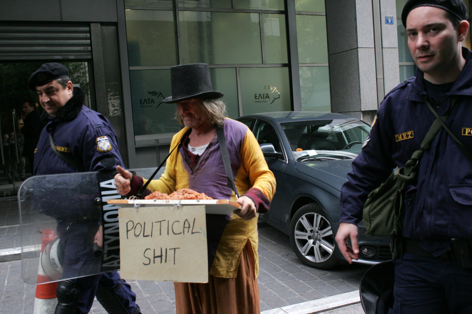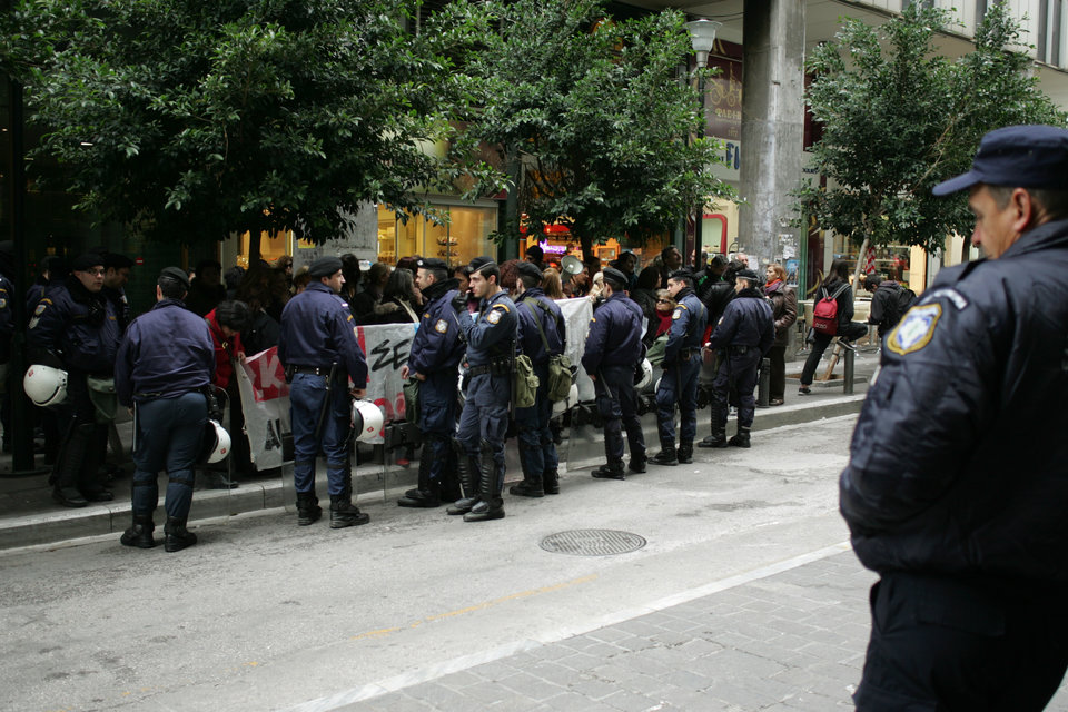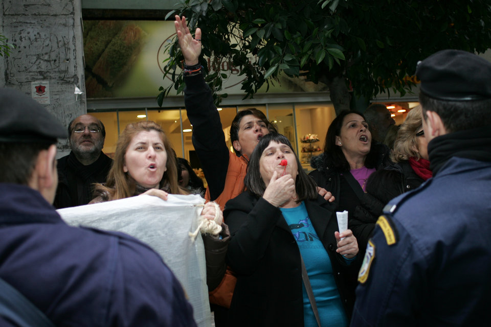 Τους εκπροσώπους των δανειστών «υποδέχθηκαν θερμά» απολυμένες καθαρίστριες του υπουργείου.