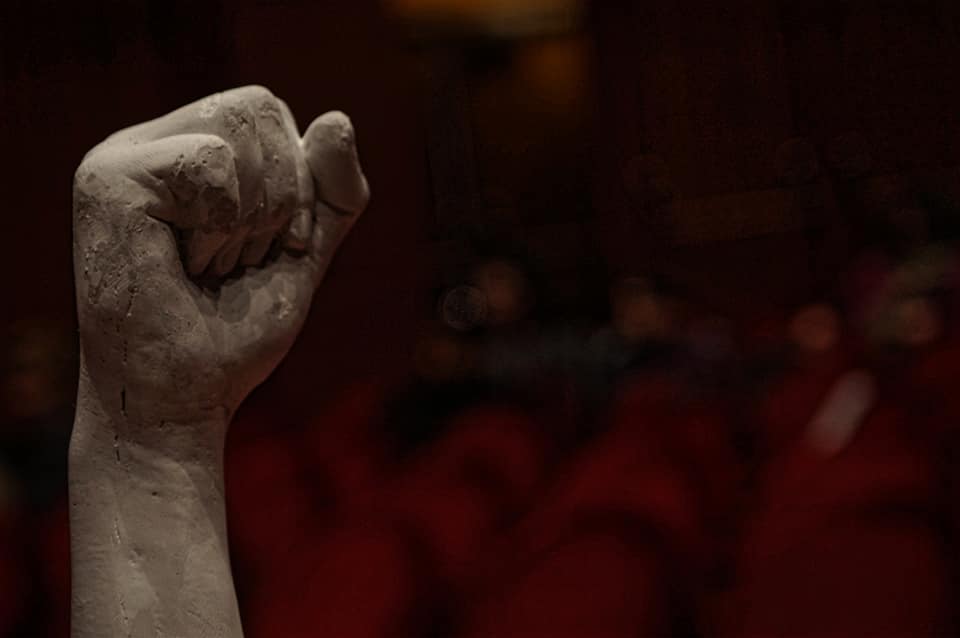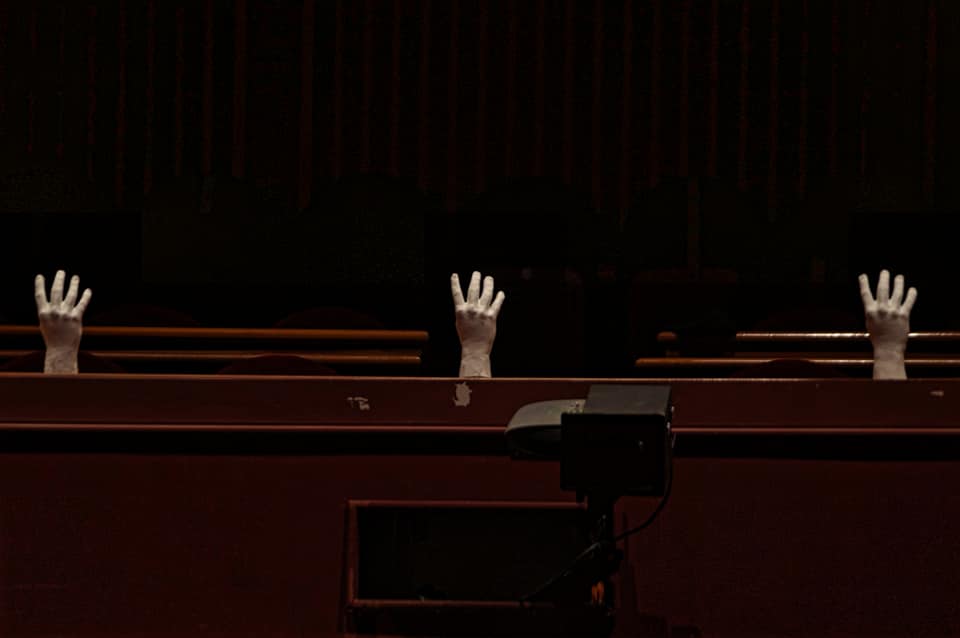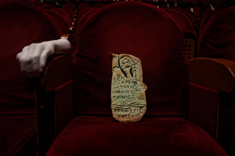 Τοποθετώντας τα γύψινα χέρια τόσο στα καθίσματα όσο και στη σκηνή του κινηματογράφου, οι φοιτητές έστειλαν το δικό τους μήνυμα για τα τεκταινόμενα στον χώρο της τέχνης, όπου πολλοί κλάδοι παραμένουν κλειστοί έναν χρόνο τώρα λόγω της πανδημίας και όχι μόνο.
