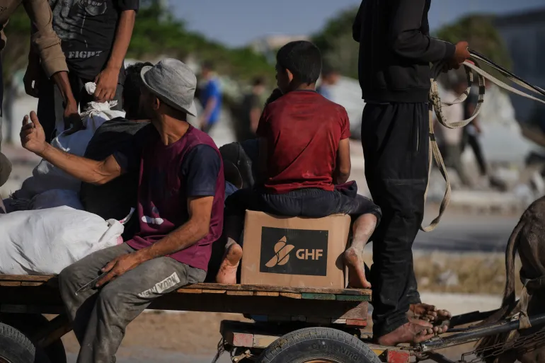 Το Ίδρυμα Ανθρωπιστικής Βοήθειας της Γάζας (GHF), το οποίο άρχισε να λειτουργεί στο τέλος Μαΐου, είναι προϊόν συνεργασίας του Ισραήλ με Αμερικανούς ευαγγελικούς και ιδιωτικές εταιρείες ασφαλείας. Ο σημερινός επικεφαλής του έχει στενούς δεσμούς με τον πρώην πρόεδρο των ΗΠΑ Ντόναλντ Τραμπ και τον πρωθυπουργό του Ισραήλ Μπενιαμίν Νετανιάχου. Το GHF λειτουργεί τέσσερα σημεία διανομής τροφίμων, τρία στο νότιο και ένα στο κεντρικό τμήμα της Γάζας. Χιλιάδες, και κατά διαστήματα δεκάδες χιλιάδες, κάτοικοι της Γάζας καταφθάνουν καθημερινά για να παραλάβουν τρόφιμα από αυτά τα σημεία, τα οποία λειτουργούν μόλις για μία ώρα καθημερινά.