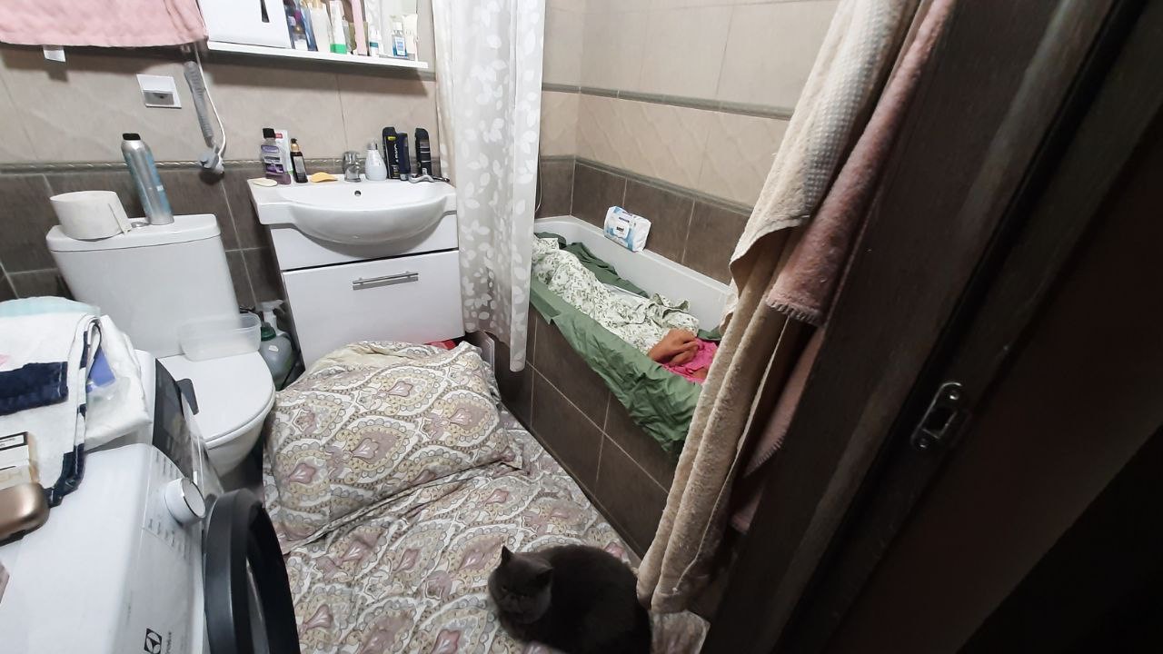Βρίσκομαι σε μία πραγματική κόλαση καθώς κρύβομαι μαζί με την οικογένειά μου και τη γάτα μας σε ένα διαμέρισμα στο κέντρο του Κιέβου. Κρυβόμαστε στο μπάνιο μας, καθώς είναι το δωμάτιο πιο μακριά από τα παράθυρα. Δεν μπορούμε να πάμε σε υπόγειο καταφύγιο, καθώς η ανάπηρη μητέρα μου δεν μπορεί να μετακινηθεί.