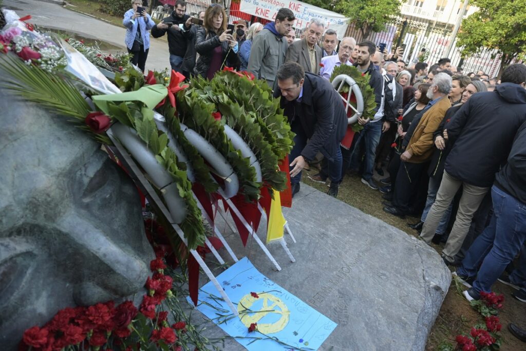 Την Τρίτη, μικροί και μεγάλοι απέτισαν φόρο τιμής σε όσους αγωνίστηκαν. Ένα λουλούδι στη μνήμη των νεκρών. Στεφάνι στο Πολυτεχνείο, του οποίου υπήρξε και ο ίδιος φοιτητής, κατέθεσε χθες 16 Νοεμβρίου ο Αλέξης Τσίπρας, συνοδευόμενος από τη γραμματέα της Κ.Ε. του ΣΥΡΙΖΑ-Π.Σ. Ράνια Σβίγκου. «Η εξέγερση του Πολυτεχνείου θα θυμίζει για πάντα ότι κάθε αυταρχικό καθεστώς πέφτει μπροστά στους αγώνες των πολιτών για δημοκρατία και δικαιοσύνη», αναφέρεται στη σχετική ανακοίνωση της αξιωματικής αντιπολίτευσης. Ο ΣΥΡΙΖΑ κάνει λόγο για εποχές που αντιμετωπίζουμε νέες μορφές αυταρχισμού και ανελευθερίας και μια πολιτική εξουσία που λεηλατεί την κοινωνία για να εξυπηρετεί τα συμφέροντα των λίγων και ταυτόχρονα δεν σέβεται το κράτος δικαίου και την ιδιωτική ζωή των πολιτών. Οι οργανώσεις του ΣΥΡΙΖΑ δίνουν ραντεβού στις 16.00 στα Χαυτεία.